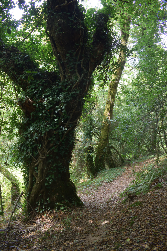 Traversez entièrement Kerbellec pour rejoindre la route d’accès menant au croisement, puis, à ce niveau, prenez le chemin en face qui conduit à Kerganet. Suivez la route goudronnée jusqu’au Cleuziou, grande ferme dotée de bâtiments d’élevage modernes. Après le verger, prenez à droite, puis immédiatement à gauche le chemin qui se faufile entre une haie et une parcelle d’eucalyptus.