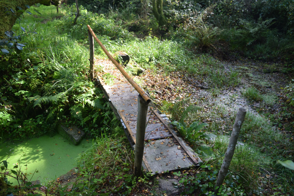 Poursuivez vers le fond et le haut de la prairie. Vous êtes sur l'un des 2 canaux qui alimentait en eau le moulin de la Trinité dans les années 1900.