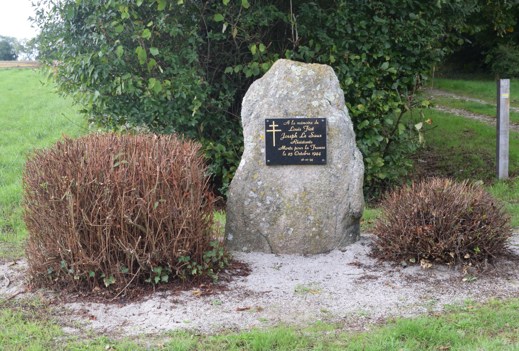 Le 25 octobre 1944, une attaque allemande eut lieu ici, à Berluhec. Du côté des FFI, deux hommes furent tués : Louis Fiot et Joseph Le Saux. En leur mémoire, une stèle a été érigée ici et, régulièrement, un hommage leur est rendu sous forme de commémoration.