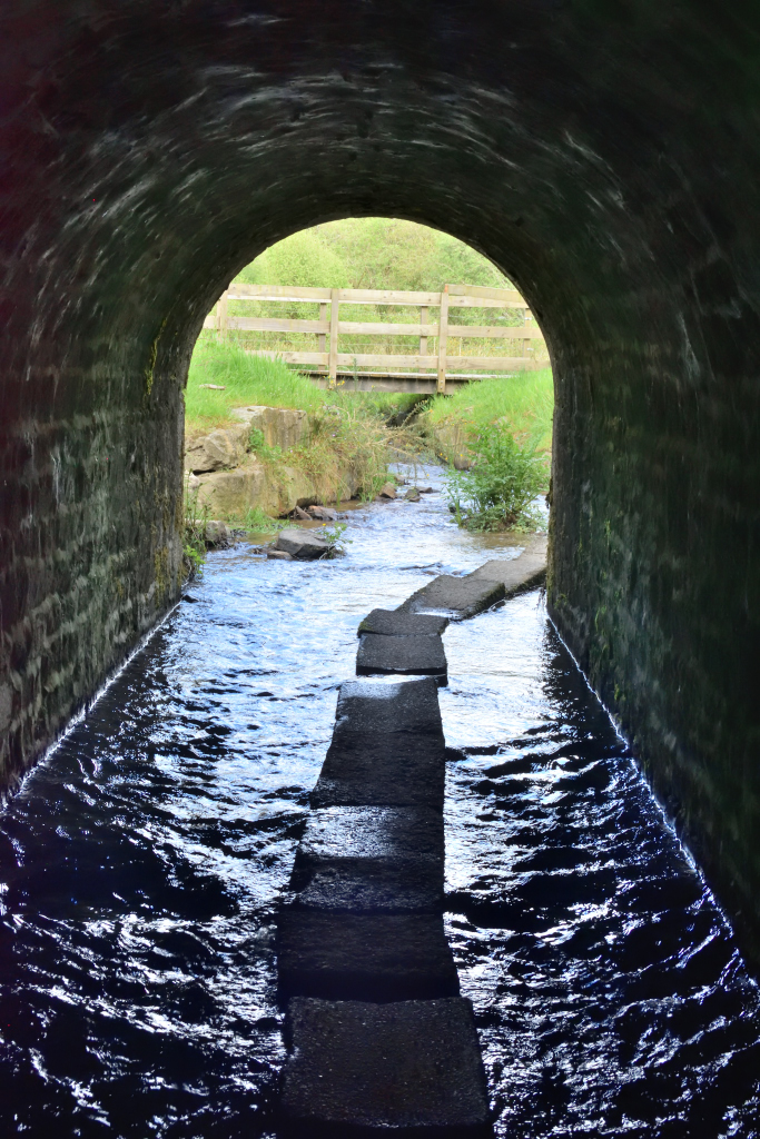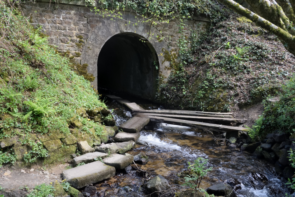 Après avoir traversé le pont, continuez tout droit, puis traversez la départementale. Prenez le chemin qui monte à gauche de la chapelle.