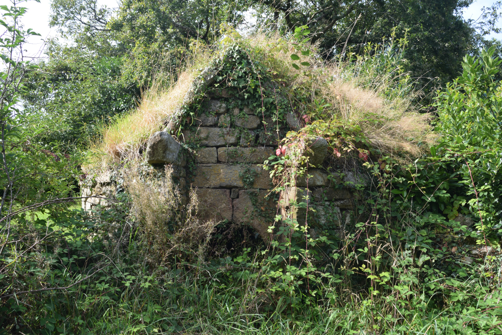 Longez le sentier entre le muret et le calvaire, puis, au bout d’environ 20 mètres, bifurquez à gauche. Au niveau d’une grande maison, quittez la route pour emprunter, à droite, un chemin creux qui débouche, au bout d’environ 400 mètres, sur la route départementale. Prenez cette route à droite sur environ 150 mètres en descendant, puis, après la prochaine maison située à droite, empruntez le chemin à droite.
