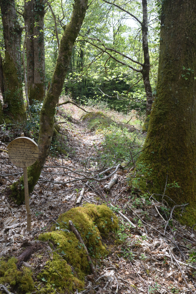 Prenez le sentier à droite juste avant d'atteindre la route et vous arrivez sur le sentier de la "Vallée des Vieux Chênes".