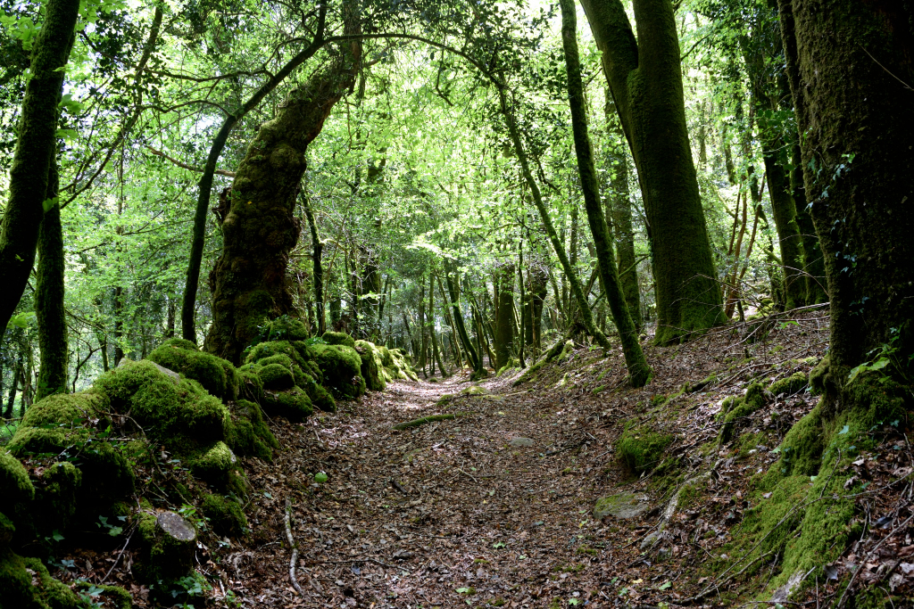 Vers la ferme abandonnée de Stang-Ludu (vallée des cendres en français: lieu où l'on fabriquait du charbon de bois), un vieux chemin bordé de talus en pierres recouverts de mousse conduit à la chapelle de la Trinité.