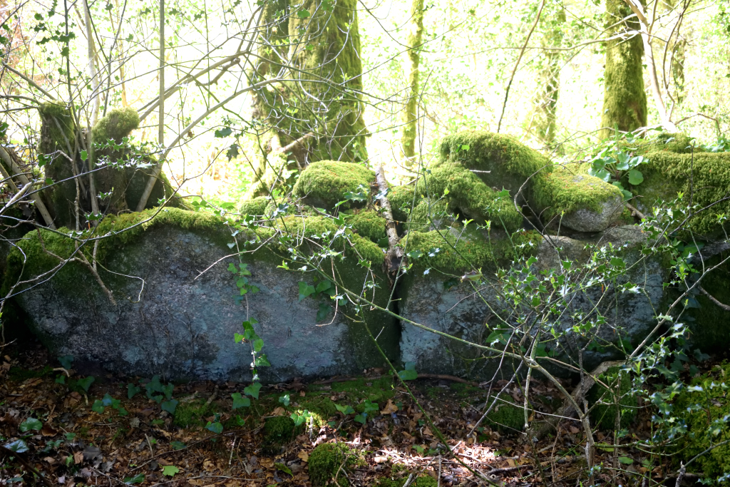Les talus bordant le chemin sont constitués d'immenses blocs de pierre assemblés avec une précision ancestrale. Il est probable que certains de ces blocs proviennent de sites funéraires du Néolithique.