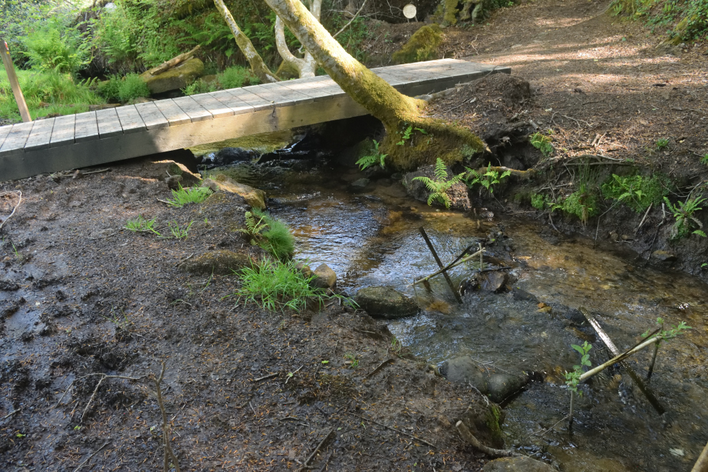 L'allée dans les sous-bois mène au pont de la Trinité qui enjambe le cours d'eau du St-Antoine.