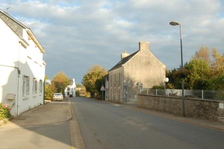 Après un bon kilomètre de descente, le chemin arrive sur la route. Prendre à droite et après 100 mètres, bifurquer vers un chemin à gauche. Au carrefour de l'entrée du village de Quélennec, prendre à droite.
