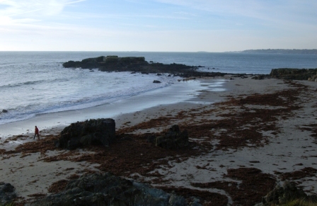 Devant vous la plage de Trenez et l'Ile Percée qui est accessible par un gué recouvert d'un pont dont il subsiste les piles. Il a été construit lors de la dernière guerre par les allemands pour accéder au blockhaus de l'île.