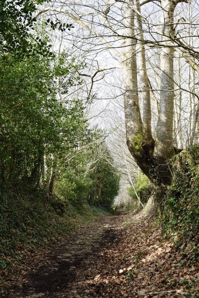 Après un bon km de route, prenez à droite un chemin qui croise une route puis arrive au village de Poulpry.