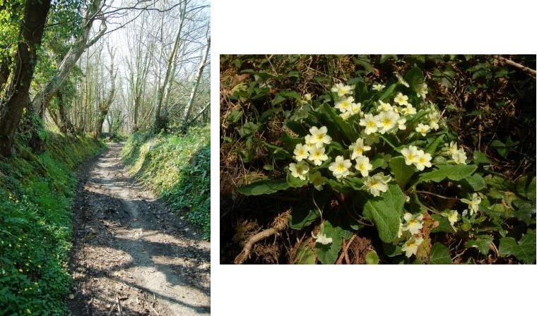Continuez le sentier à gauche de la chapelle, bifurquez après 400 mètres environ à droite en montant. Prendre le premier chemin à gauche et vous arrivez sur la route de Moëlan. Prendre à gauche et au carrefour à droite. Après 400 mètres de route, prenez le chemin à gauche vers Kérangoff.