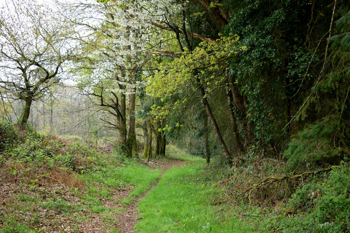 Retour en direction du parking puis descente par le chemin creux vers le moulin de Kerléon.