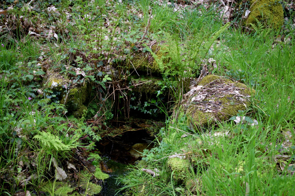 Prenez le petit raidillon sur le côté de la maison. Ce chemin longe cette le côté droit du ruisseau du Moulin Neuf.