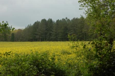 Derrière sur la droite une butte boisée qui est contournée par le chemin rejoignant le moulin Mohot.